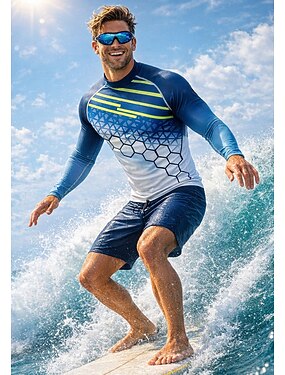 男性用 ラッシュガード サーフィンスーツ スイムシャツ 幾何学模様 勾配 UPF50+ UVプロテクション 速乾性 長袖 スイムウェア ラッシュガード サーフィン カヌー ビーチ 夏