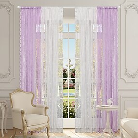 2/4枚のツートンレースシアーカーテン、ロッドポケットジャカードレース、光を透過するエレガントな窓用ドレープ、既製の高級カーテン、ホームデコレーション用