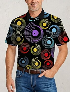 レトリ/ヴィンテージ ヒッピー 1970年代 シャツ 半袖 ヒッピー 幾何学模様 レトロ風 仮装 男性用 音楽祭 パーティー デイリーウェア 成人 シャツ 春夏