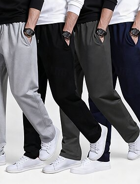 マルチパック 4枚 男性用 ライトグレー+ダークグレー+ネイビーブルー+ブラック スウェットパンツ ズボン ドローストリング 弾性ウエスト 平織り バケーション デイリーウェア ポリエステル 春
