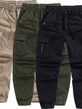 男性用 カーゴパンツ ジョガー ズボン ドローストリング 弾性ウエスト マルチポケット 純色 防風 履き心地よい 日常 アウトドア 祝日 ストリートファッション スタイリッシュ ブラック アーミーグリーン