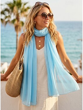 女性用シフォンスカーフ、軽量ポリエステル製、ボヘミアンスタイル、マルチカラー、柔らかく通気性があり、休暇、旅行、普段使い、カジュアルな服装に最適です。