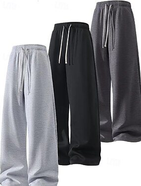 マルチパック 3ピース メンズ ブラック+ネイビーブルー+ライトグレー スウェットパンツ ズボン 軽量 ストレートレッグ スウェットパンツ ドローストリング 伸縮性ウエスト 無地 バケーション デイリーウェア スパンデックス 春