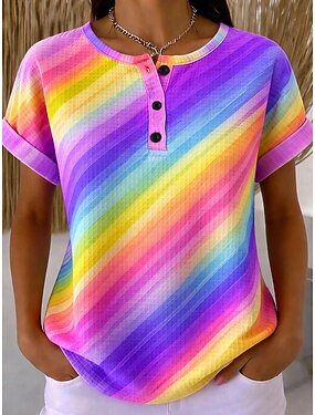 女性用 テクスチャーニットトップス Tシャツ カラーブロック オンブル’ グラフィック ジオメトリ スタイリッシュ クラシック 半袖 クルーネック ラウンドネック ヘンリー ロングトップス 日常 スポーツ パープル オレンジ グリーン 夏 春