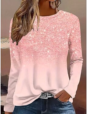 女性用Tシャツ 長袖 クルーネック 長袖 チュニック オンブレ グラフィック ヴィンテージ スタイリッシュ ラウンドネック レギュラー トップス デイリー プリント ピンク 秋 プレフォール