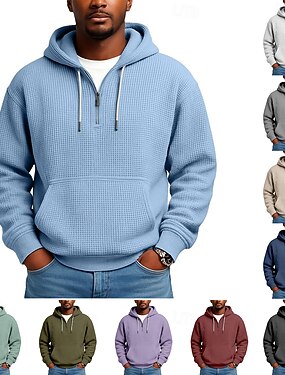 男性用 パーカー ワッフルパーカー プルオーバーフーディースウェットシャツ クォータージッパーパーカー アプリコット ワインレッド ホワイト ライトグリーン アーミーグリーン フード付き 平織り カンガルーポケット テクスチャード加工 カジュアル 日常 スポーツ ストリートファッション クール スポーツウェア 春 & 秋 秋冬 衣類 パーカー トレーナー