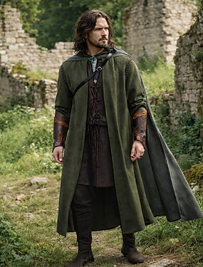 セット ヴィンテージ 中世 ルネッサンス コート パンツ クローク アクセサリー付き 長袖 戦士 Ranger 仮装 男性用 ファンタジー ハロウィーン カーニバル ルネッサンスフェア LARP 成人 コスチューム オールシーズン