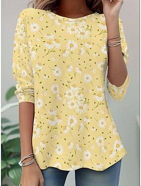 女性用 Tシャツ プリント フラワー グラフィック スタイリッシュ クラシック カジュアル 長袖 クルーネック レギュラートップス 日常 週末 バケーションウェア ブラック ワイン アーミーグリーン ネイビーブルー オレンジ 夏 春 秋