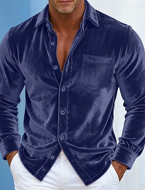 男性用 シャツ カジュアルシャツ クリスマスシャツ ベルベットシャツ ワイン ロイヤルブルー ブラウン グリーン 長袖 純色 平織り シャツカラー カーニバル クリスマス ポケット 衣類 ベルベット クリスマス エレガント あたたか 活発的