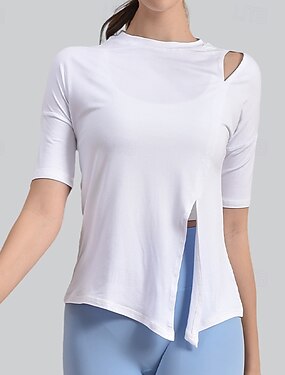 女性用 ヨガシャツ ヨガタンクトップ ワークアウトトップス クルーネック 高通気性 オフショルダー 半袖 スポーツ 純色 トップス ために ジム ランニング フィットネス アクティブウェア