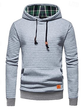 男性用 パーカー ワッフルパーカー プルオーバーフーディースウェットシャツ ブラック ホワイト グレー フード付き 平織り パッチワーク カラーブロック テクスチャード加工 スポーツ カジュアル 日常 ポリエステル ストリートファッション クール スポーツウェア 春 & 秋 衣類 パーカー トレーナー 長袖 ルーズフィット