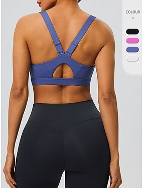 女性用 ワークアウトタンクトップ スポーツブラ ラウンドネック 下着 衝撃吸収性 サイズが調整できます. ライトウェイト ワイヤレス パッド入り 純色 スポーツ アクティブウェア ブルー ブラック ピラティス ジム ジムトレーニング