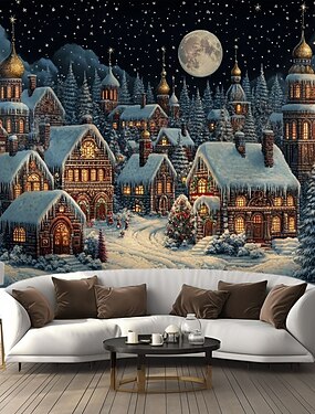 クリスマスの飾り 吊り下げタペストリー 雪の村 壁アート クリスマス 大きなタペストリー 壁画 装飾 写真 背景 ブランケット カーテン 自宅 寝室 リビングルーム 装飾