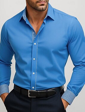 男性用 ドレスシャツ 平織り フォーマル 結婚式 ホワイト ネイビーブルー ブルー グレー 長袖 折襟 オールシーズン 衣類 パッチワーク