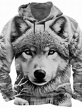男性用 オオカミ 3D フーディーズ スウェットシャツ クール パーティー 長袖 クルーネック ストリートウェア クラブ ブルー ホワイト パープル ドローストリング 秋 冬 デザイナー S M L XL XXL XXXL