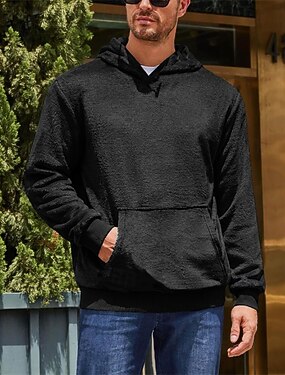 男性用 パーカー ファジーシェルパ ブラック ブルー ブラウン カーキ色 グレー フード付き 平織り ポケット スポーツ 日常 祝日 ストリートファッション クール カジュアル 春 & 秋 衣類 パーカー トレーナー