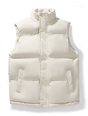 男性用 パファーベスト 日常 カジュアル 春 & 秋 ポケット ポリエステル 快適 純色 ジッパ- スタンド ブラック ブルー カーキ色 ベスト