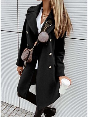 女性用 コート 快適 高通気性 ポケット ボタン カジュアル 平織り カジュアル バケーション ストリート デイリーウェア シングルブレスト ロング 折襟 レギュラー 長袖 アウターウェア ブラック 春 秋