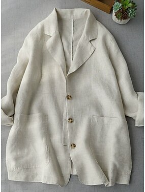 女性用 ブレザー 快適 高通気性 ポケット ボタン ファッション 日常 平織り アウトドア カジュアル 日常 シングルブレスト レギュラー ラペル レギュラー 長袖 アウターウェア ネイビーブルー ベージュ 春 秋
