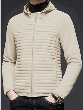 男性用 冬物コート パフジャケット パッド入りジャケット ポケット ポリスター バケーション デイリーウェア デート レギュラー ファッション カジュアル 快適 保温 冬 単色/無地 ブラック ホワイト ネイビーブルー カーキ色 パファージャケット
