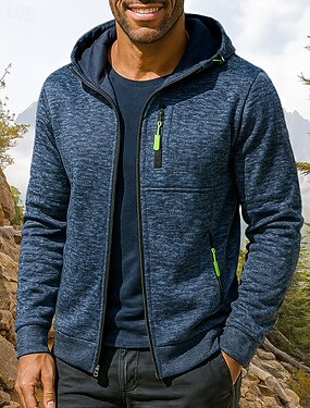 男性用 フリース スウェットシャツ 冬用コート 長袖 スタンド トップス アウトドア 保温 春 秋 フルジップ ポリエステル パッチワーク アーミーグリーン ネービーブルー ベージュ 旅行 ランニング