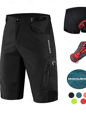 男性用 サイクリング用アンダーショーツ MTBショーツ バイクショーツ バイク パッド入りショーツ ボトムズ フォームフィット マウンテンサイクリング ロードバイク スポーツ 防水 3Dパッド 速乾性 反射性ストリップ ブラック レッド 衣類 サイクルウェア