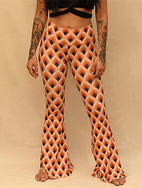 レトリ/ヴィンテージ ボヘミアン 1970年代 ベルボトムパンツ フレアレギンス フレアパンツ ディスコ ハイウエスト サイケデリック 仮装 女性用 ハロウィーン カーニバル バケーション 音楽祭 祭り 成人 パンツ