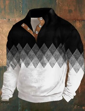 男性用 チェック パッチワーク スウェットシャツ ファッション 日常 シンプル カジュアル 長袖 ハイネック バケーション お出かけ ブラック ブルー ボタン 秋 冬 デザイナー S M L XL XXL 3XL