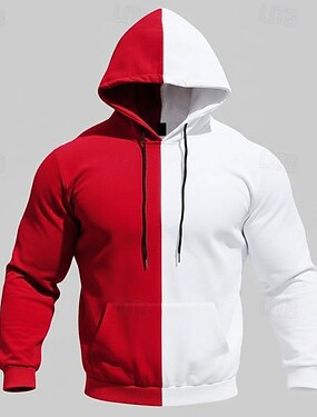 男性用 パーカー ホワイト イエロー ルビーレッド ブラウン ライトブルー フード付き カラーブロック パッチワーク スポーツ 日常 祝日 ストリートファッション ベーシック カジュアル 春 & 秋 衣類 パーカー トレーナー 長袖