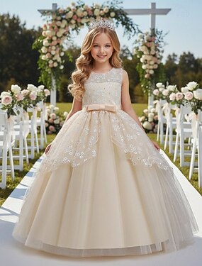 フラワーガールドレス 女の子 フォーマルドレス 結婚式の服装 パーティー 結婚式 フォーマル ファッション 愛らしい フォーマル パッチワーク メッシュ フラワー プリンセス ノースリーブ クルーネック ブルー シャンパン 4年以上