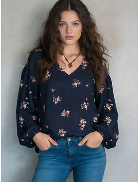 女性用 シャツ パッチワーク ボタン プリント フラワー グラフィック ヴィンテージ スタイリッシュ 近代の 長袖 シャツカラー レギュラートップス 日常 ブルー ピンク 夏 春
