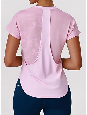 女性用 ソリッド アスレチックシャツ テニスシャツ テニスティー スポーツトップ 半袖 パッチワーク 速乾性 高通気性 テニス ピクルスボール ランニング クルーネック Tシャツ ピンク テニスウェア