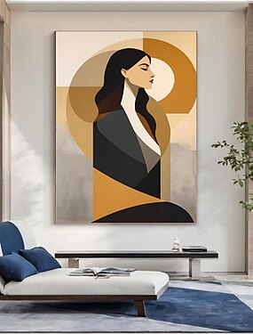 手描きの抽象画、ピカソ風の油絵、幾何学模様の少女、キャンバス壁アート、モダンなキャンバス絵画、家の壁、リビングルームの装飾