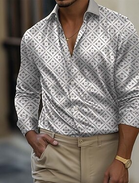 男性用 幾何学模様 グリッド / タータンチェック フラワープリント シャツ サテンシャツ ドレスシャツ 長袖 ビジネスカジュアル バケーション 日常着 夏 春 秋 折襟 3Dプリント ボタンアップシャツ ブルー ホワイト イエロー グリーン
