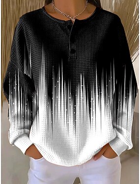 女性用 プルオーバースウェットシャツ ボタン プリント グラフィック 幾何学模様 あたたか クラシック カジュアル 長袖 クルーネック ラウンドネック レギュラートップス カジュアル ストリート 日常着 ブルー ブラック オレンジ グリーン 春 秋 冬