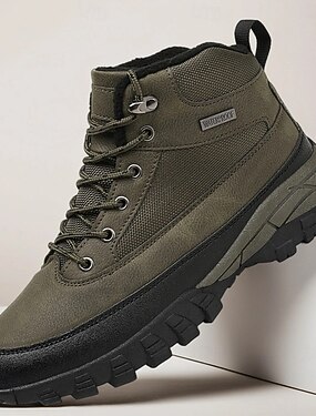 丈夫なトラクションソールを備えたメンズオリーブグリーンのアンクルハイキングブーツ、軽量アウトドアワーク&トレッキングシューズ
