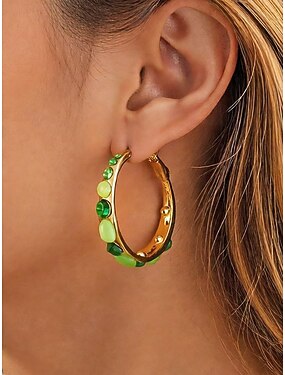 女性用宝石とラインストーンのフープイヤリング - 複数の色、合金素材、エレガントなデザイン、休暇やパーティーに最適