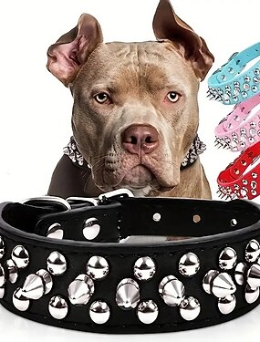 スパイク付き犬用首輪 - マッシュルームリベットとスパイクスタッド付きの柔らかいPUレザー - 女の子と男の子のための調節可能で耐久性のあるトレーニング首輪