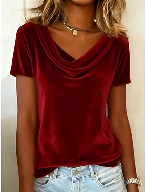 女性用 Tシャツ ティートップ 純色 ファッション クラシック カジュアル 半袖 パイルネック レギュラートップス 日常 お出かけ 週末 ブルー シルバー ブラック ピンク ワイン 夏 春