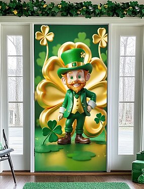 セントパトリックデー ポスター ドアカバー 屋外バナー レプラコーン かわいいスタイル 3D パーティー 寮 ティーンズルーム 大学寮 男の隠れ家フラットベッドルーム 撮影背景 ホームデコレーション