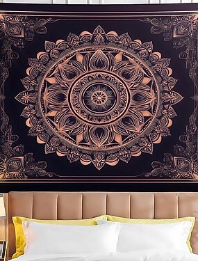 フォレストグリーンとオレンジのマンダラタペストリー壁掛け、ボヘミアン花柄、リビングルーム用の大きな美しい壁アート、ホームデコレーション、壁アート背景、布ポスター
