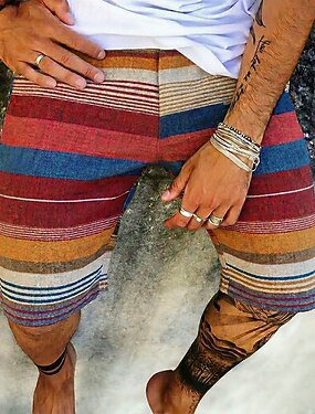 男性用 ボヘミアン 多色 ストライプ スウェットショーツ ビーチショーツ テリーショーツ ミディアムウエスト レトリ/ヴィンテージ カジュアル 日常 ストリートウェア 祝日 3Dプリント 伸縮性のあるドローストリングウエスト デザイナー 衣類