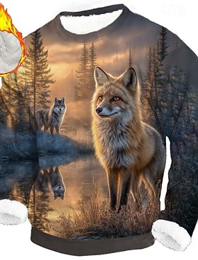 男性用 きつね オオカミ 3Dプリント フリース スウェットシャツ 日常 カジュアル ファンタジー クルーネック 家 パーティー 贈り物 ストリートウェア ブルー1 青2# ブラウン 3Dプリント 秋 冬 デザイナー S M L XL XXL XXXL