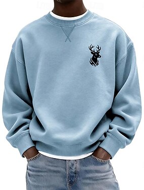 男性用 グラフィック しか スウェットシャツ 長袖 トレーナー クルーネック クラシック アスレイジャー 日常 家 秋 冬 ブルー ブラック グリーン 衣類 デザイナー 3Dプリント S M L XL 2XL 3XL