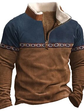 男性用 グラフィック トライバル スウェットシャツ スウェットシャツ ジップスウェットシャツ 長袖 トレーナー クォータージップ 日常 ベーシック エスニック 3Dプリント バケーション 祝日 お出かけ プリント フリース 秋冬