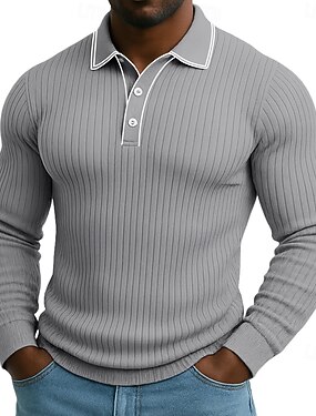 男性用 ポロ リブニットトップス バケーション ストリート ラペル 長袖 ベーシック 近代の 平織り ボタン 春 秋 オールシーズン スリムフィット ブルー ブラック グレー ネイビーブルー ポロ