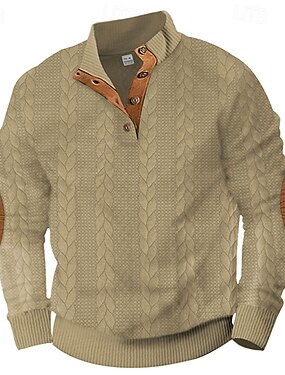男性用 スウェットシャツ ブラック ホワイト カーキ色 グレー クルーネック ジャカード リブ テクスチャード加工 ニットテクスチャ スポーツ 日常 祝日 ポリエステル テクスチャー ストリートファッション ベーシック カジュアル 秋 冬 衣類 パーカー トレーナー 長袖