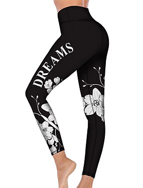 女性用 ヨガパンツ バットリフト おなかコントロール ハイウエスト ジムトレーニング ランニング フィットネス サイクリングタイツ レギンス フラワープリント ブラック 秋 冬 スポーツ アクティブウェア 高弾性
