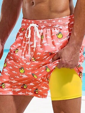 男性用 スイムショーツ ボードショーツ スイムトランク プリント 速乾性 高通気性 ドローストリング 弾性ウエスト コンプレッションライナー付き バケーション ビーチ ハワイアン カジュアル レイクブルー ピンク