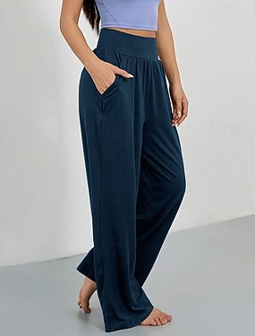 女性用 ワイドレッグパンツ ヨガパンツ ポケット付き おなかコントロール ハイウエスト ジム バレーボール いい結果になる ボトムズ 純色 ダークグレー ブラック アーミーグリーン スポーツ アクティブウェア